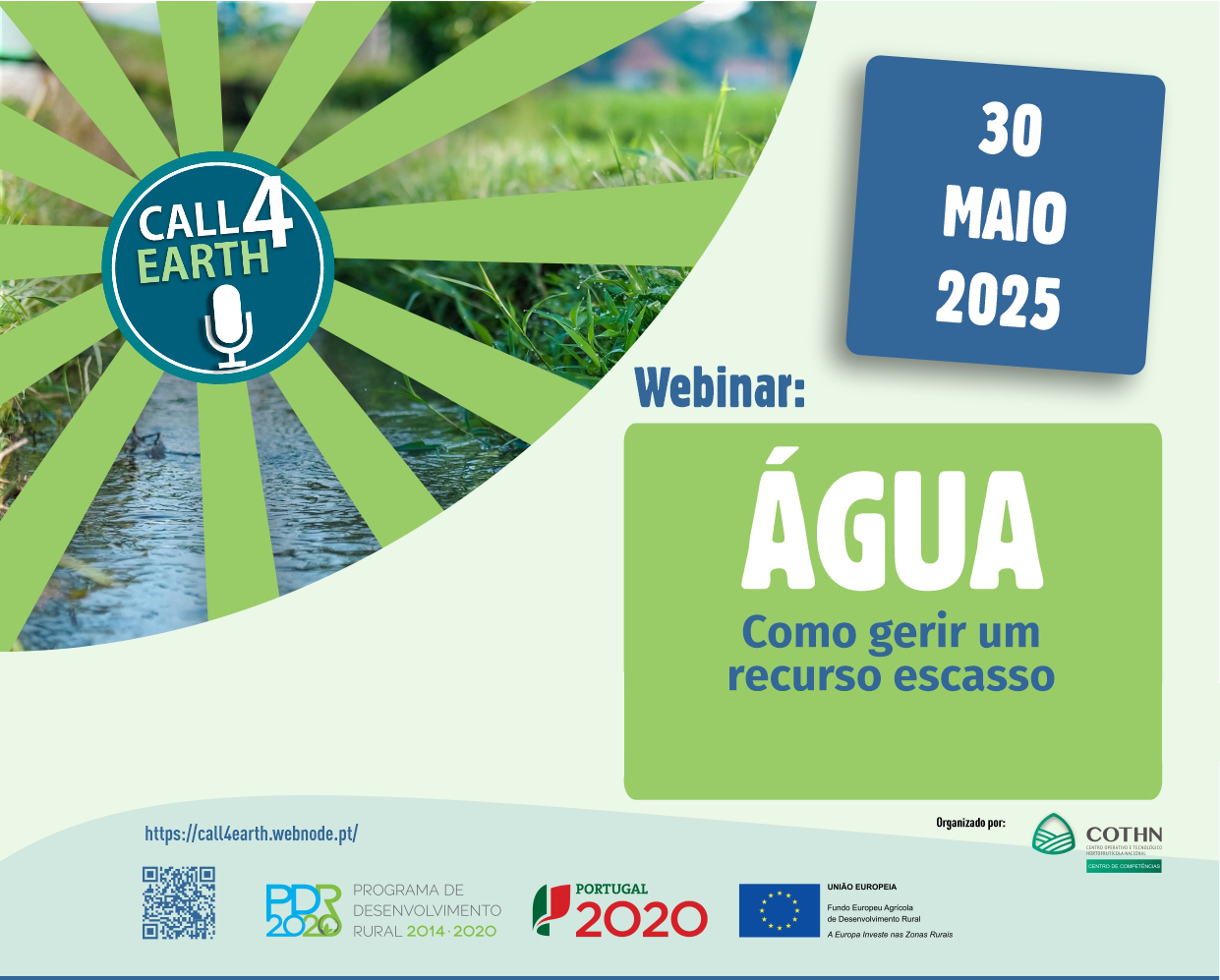 No passado dia 30 de maio de 2025, realizou-se mais um Webinar no âmbito do projeto Call4Earth, com a temática sempre revelante da água, um recurso que evidencia tornar-se escasso, tornando a discussão em torno da sua gestão, absolutamente imprescindível. Este Webinar contou com cerca de 100 participantes, via zoom e foi realizado no âmbito do projeto PDR2020 coordenado pelo COTHN-CC.